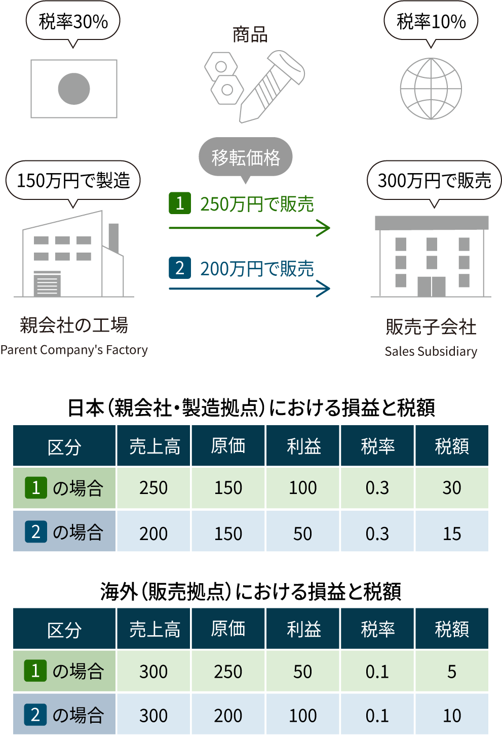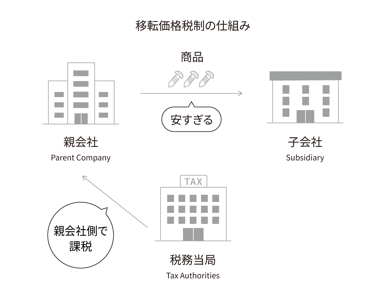 たとえば、日本の会社が海外の子会社にモノを安すぎる値段で売ってしまうと、日本の利益が減って税金も少なくなりますよね。逆に高すぎる値段で買う場合も同じです。